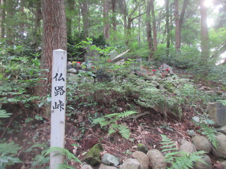| 佛路越えを登る 菩提寺山大沢公園トイレ~菩提寺山頂~門前駐車場~山頂~大沢公園トイレ 2023.09.29(金) 曇り 248m 14671歩 中秋の名月の日、「佛路越え」を完走しました。この山道は、五泉橋田地区門前から菩提寺山山頂を経て新津矢代田(小須戸方面)に抜ける4㎞の峠道を言います。かって小須戸は、信濃川の河川船運で栄えた在郷町の性格を持ち江戸時代には長岡船頭の船着場となっていた。 明治30年に信越線が開通すると佛路超えは衰退の一途をたどることとなる。 菩提寺山の歴史は、慶長5年上杉移民一揆が知られている。この時法華寺も焼失し1300年の歴史が終わった。 山頂からは、東は五泉連峰、西は越後平野を望むことができる。護摩堂山、高立山と合わせて西山3山という。 コース&タイム 大沢公園トイレ5:38~標識5:50~ぶどう園分岐6:07~佛路峠6:08~菩提寺山山頂6:15~峠の茶屋6:21~見守地蔵6:35~ホトケチ桜6:38~菩提寺山入口6:59~佛路峠7:00~門前菩提寺山登山口7:02~ホトケチ桜7:29~菩提寺山山頂7:57/8:27~大沢公園トイレ登山口8:56~~ |